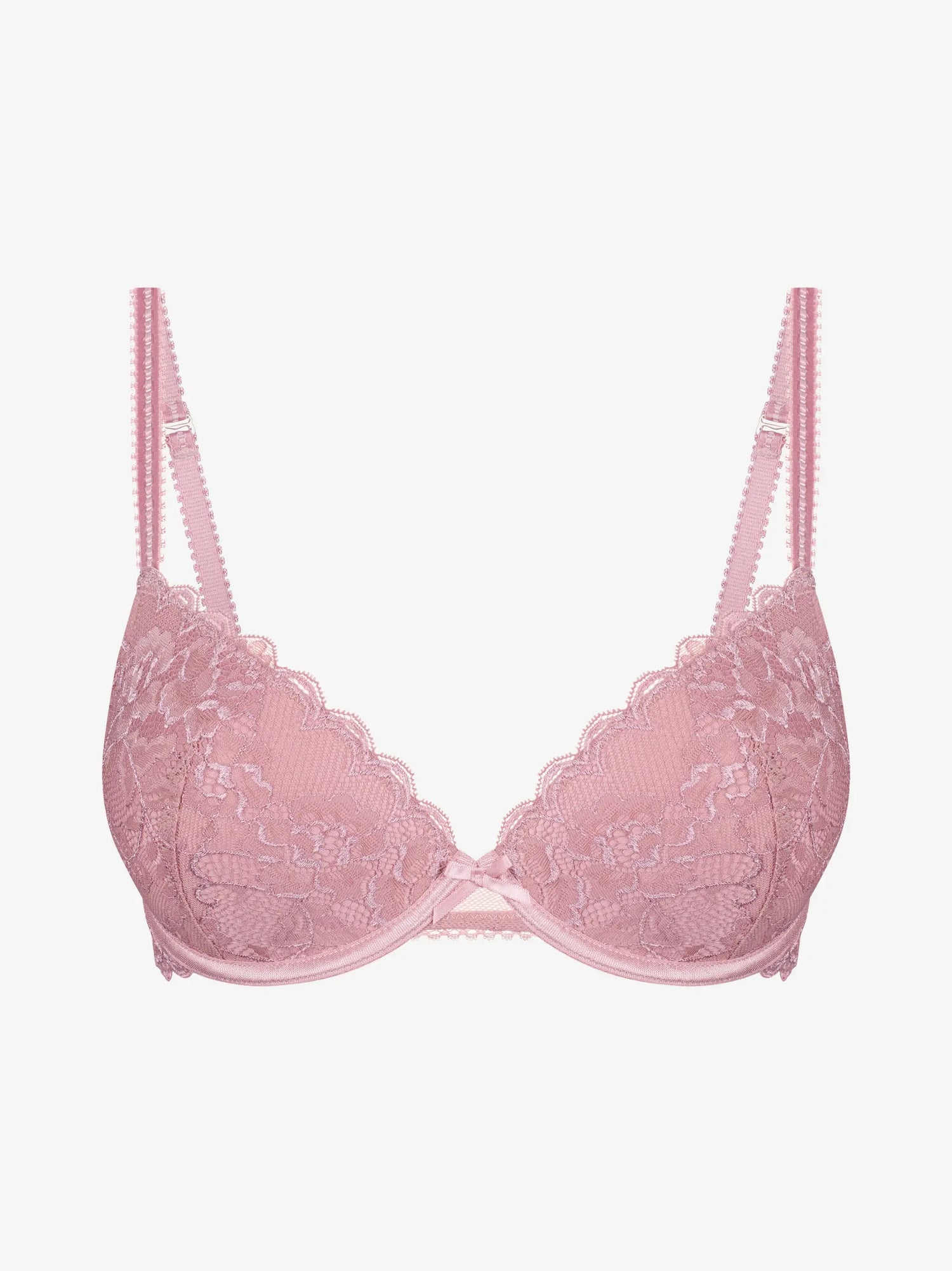 Dawn Seamless Push Up ist ein wunderschöner BH mit gepolsterten Körbchen, die deine Brüste nach oben und näher zusammenschieben. Der Push-up-BH ist perfekt für jedes Outfit, bei dem du dir ein volleres Dekolleté wünschst. Der Push-up-BH bietet den ganzen Tag lang hohen Tragekomfort und Unterstützung. Der BH hat multifunktionale Träger, so dass du ihn passend zu deinem Outfit im Neckholder-Stil oder als Überkreuzträger auf dem Rücken tragen kannst. Der BH ist mit wunderschöner Spitze verziert, die die nahtlosen Cups bedeckt.