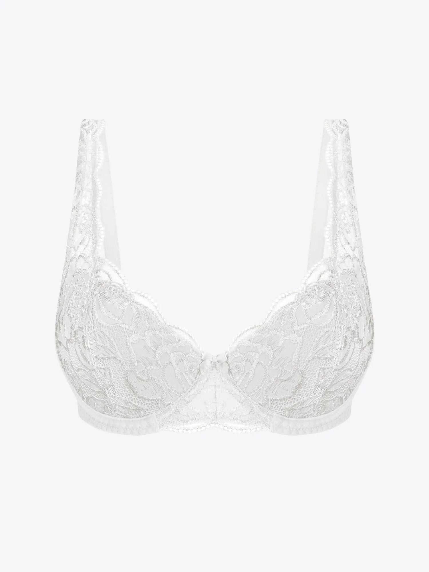 Der gepolsterte BH Florence hat Körbchen mit dünner, flexibler Polsterung, die dem Busen eine runde Form und eine sanfte Hebung verleiht. Die Körbchen sind mit wunderschöner floraler Spitze überzogen, die sich bis zu den Trägern erstreckt. Der gepolsterte BH ist sowohl für kleinere als auch für größere Körbchengrößen geeignet.