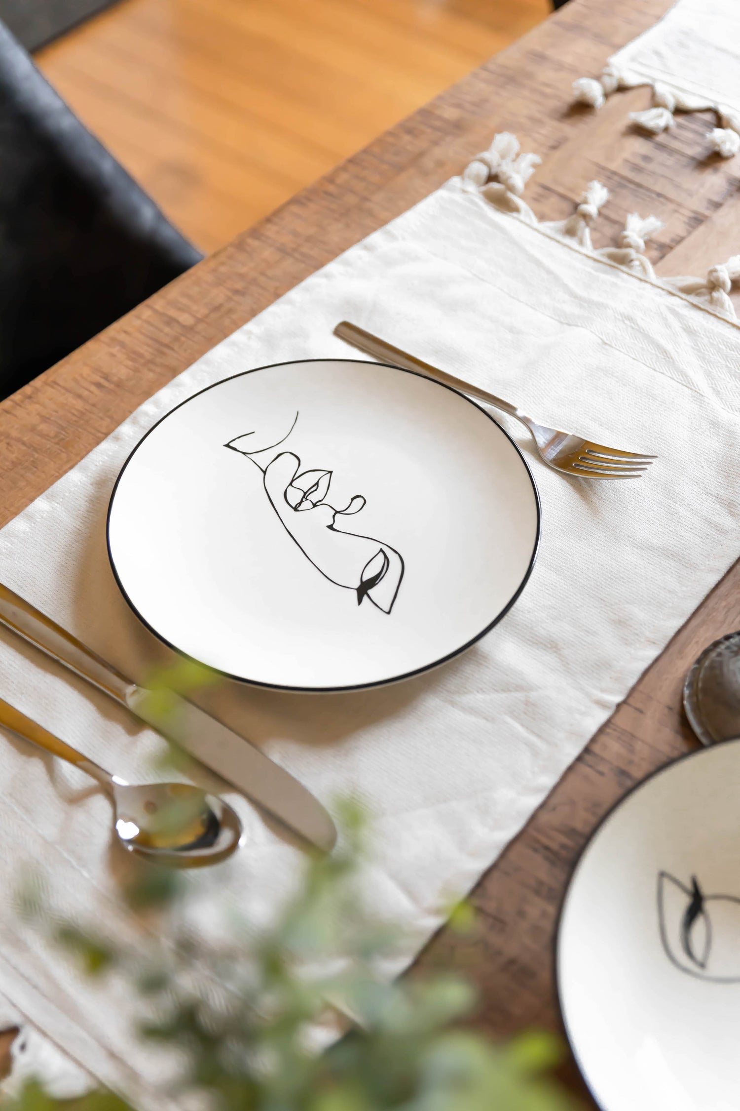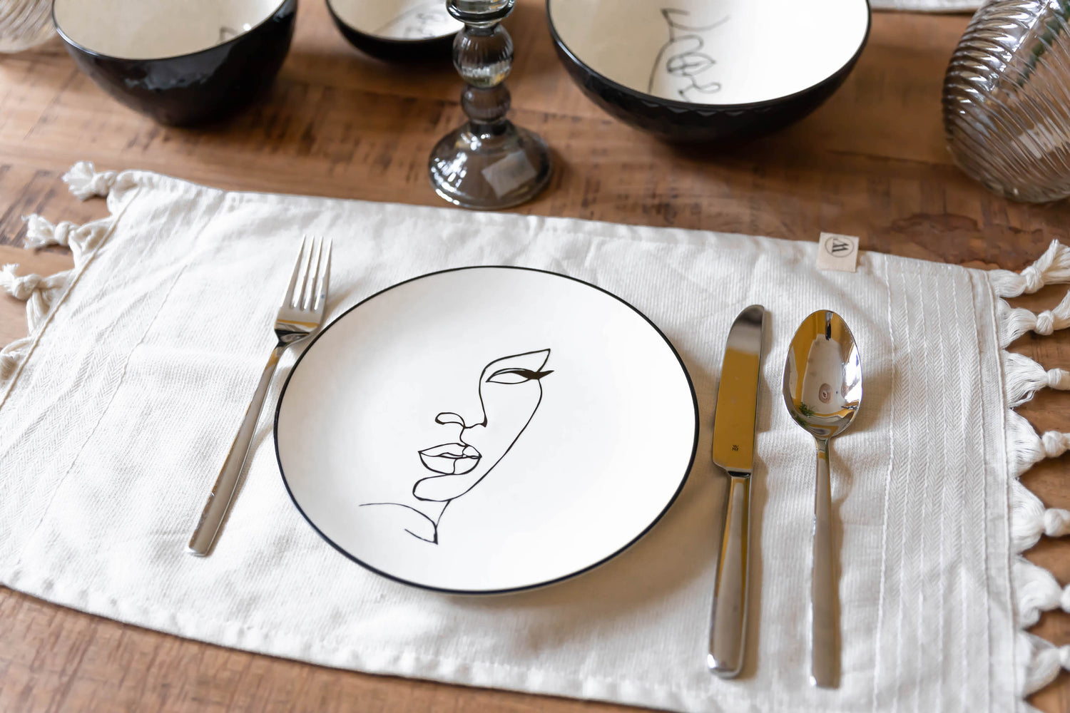 Langweiliges Geschirr ist ein No Go! Mit dieser trendy schwarz-weißen Geschirrkollektion können Sie den Tisch stilvoll decken. Denn wie cool ist dieses Design mit Gesicht? Perfekt für Ihre Lieblingssandwiches! Mix & Match verschiedener Schüsseln, Teller und Tassen mit unterschiedlichen Mustern für ein schickes und modernes Tischbild.