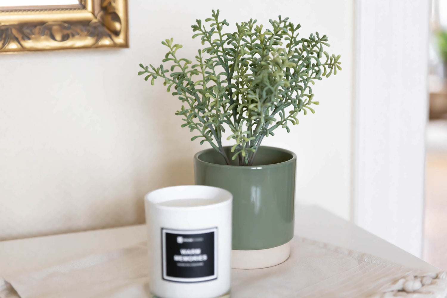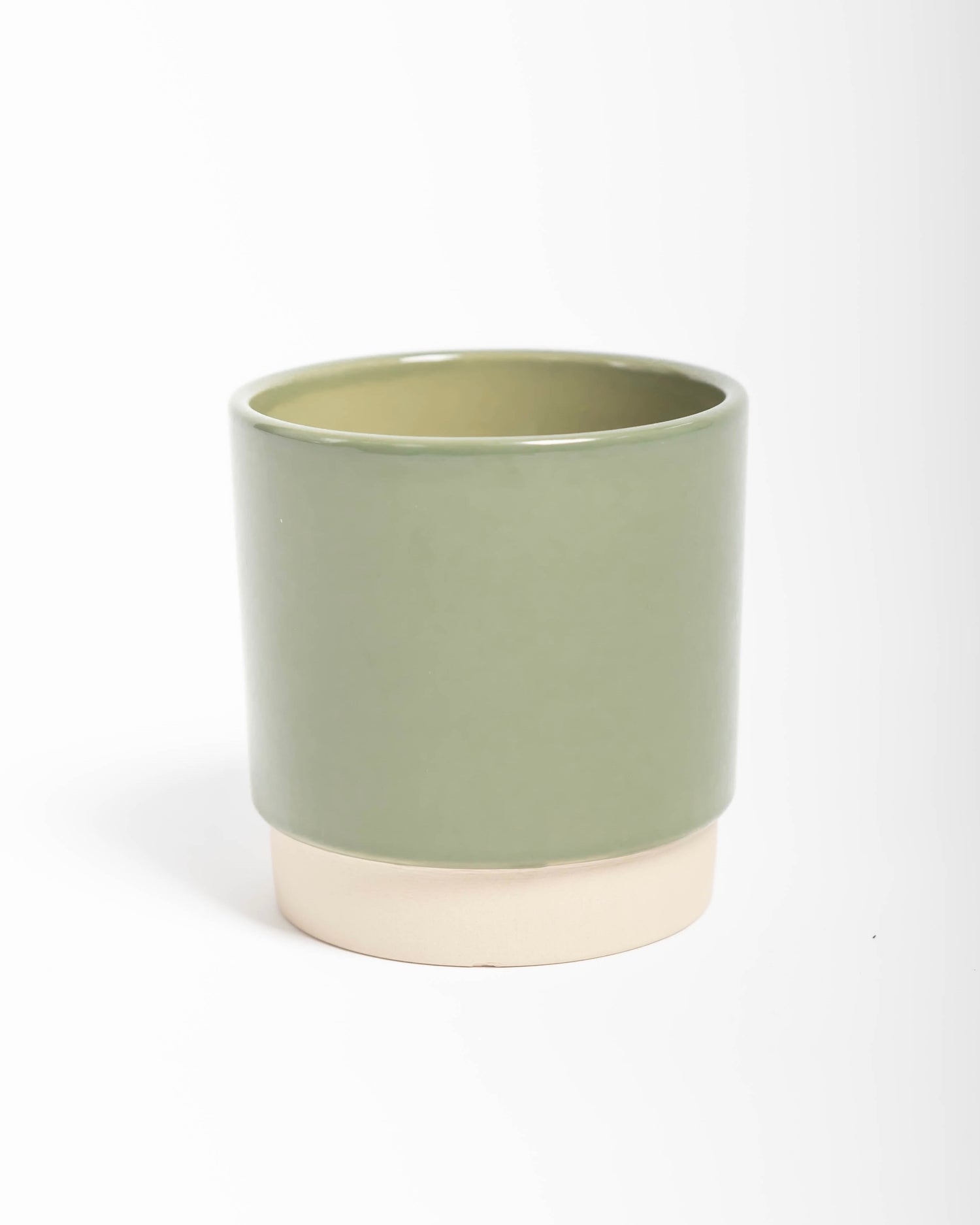 GRÜNER TOPF MIT BEIGEN DETAILS