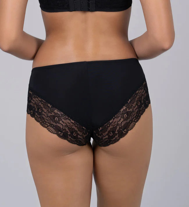 Hailey Tai gehört zu unserer MyPanties-Kollektion, einem alltagstauglichen Slip, der zu allen Gelegenheiten getragen werden kann. Dieser beliebte Slip hat einen dünnen Gummizug in der Taille, einen bequemen, baumwollgefütterten Schritt und Spitze an der Beinöffnung und auf der Vorderseite. Der Stoff ist glatt und seidig weich.