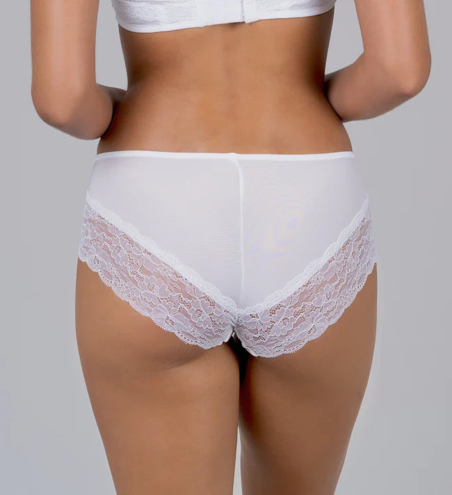Hailey Tai gehört zu unserer MyPanties-Kollektion, einem alltagstauglichen Slip, der zu allen Gelegenheiten getragen werden kann. Dieser beliebte Slip hat einen dünnen Gummizug in der Taille, einen bequemen, baumwollgefütterten Schritt und Spitze an der Beinöffnung und auf der Vorderseite. Der Stoff ist glatt und seidig weich.
