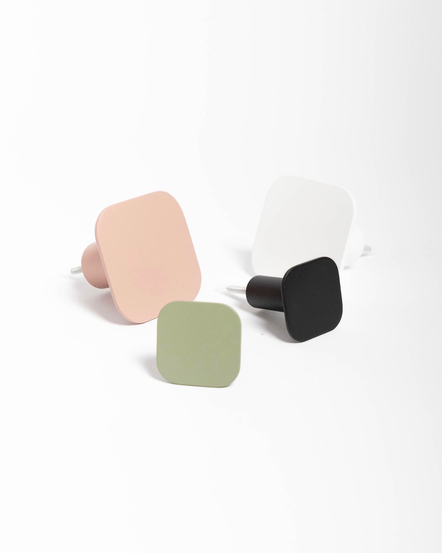 Dieses Set besteht aus einem kleinen schwarzen quadratischen Haken mit den Maßen 4,5 cm x 4,5 cm und einem größeren rosa Haken mit den Maßen 7 cm x 7 cm. Dieses Set ist auch in grün und weiß erhältlich!