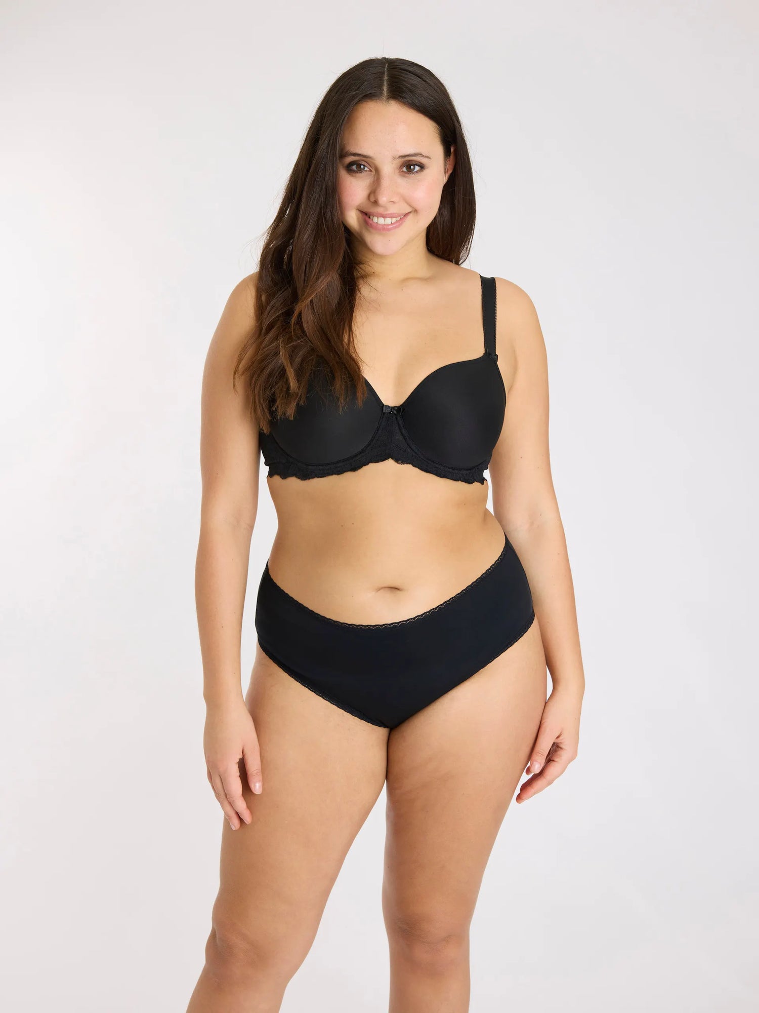 Hanna Tai ist ein ultradünnes und leichtes Micro-Panty mit glatter Oberfläche. Das Tai-Höschen hat eine normale Taille, eine elastische Passform und einen hohen Beinausschnitt. Die Hanna-Höschen haben eine kleine, elastische Spitze am Rand, die ihnen einen femininen Look verleiht. Erhältlich in verschiedenen Farben, passend zu deinem Alltags-BH.