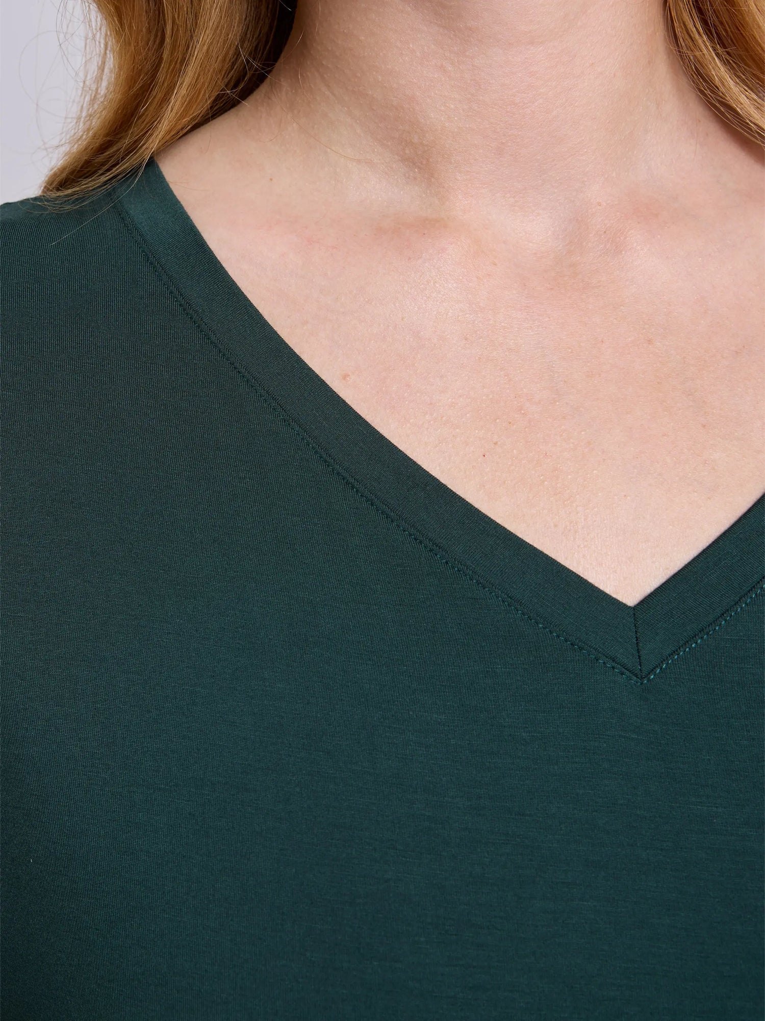 Der Wohlfühl-Look, den du jede Nacht tragen möchtest. Das Lily T-Shirt-Kleid ist weich, atmungsaktiv und wunderbar entspannt mit V-Ausschnitt.