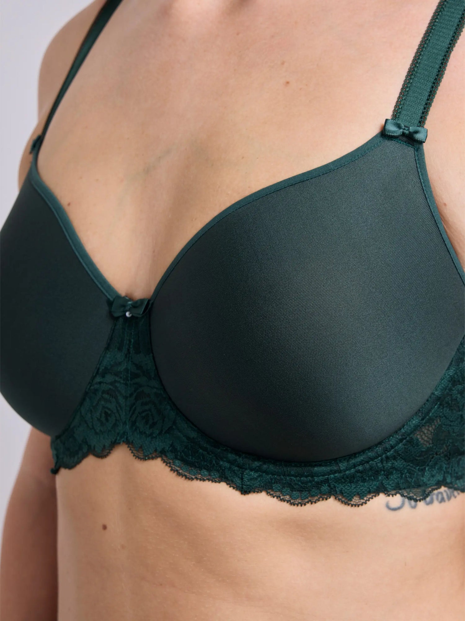 Unser Lissi soft moulded hat eine Passform wie ein Full Shaper. Er ist ein unglaublich stützender BH, der der Büste eine natürliche runde Form verleiht und leicht minimierend wirkt. Die geformten und nahtlosen Cups lassen den BH unter eng anliegender Kleidung unsichtbar erscheinen. Der perfekte T-Shirt-BH!