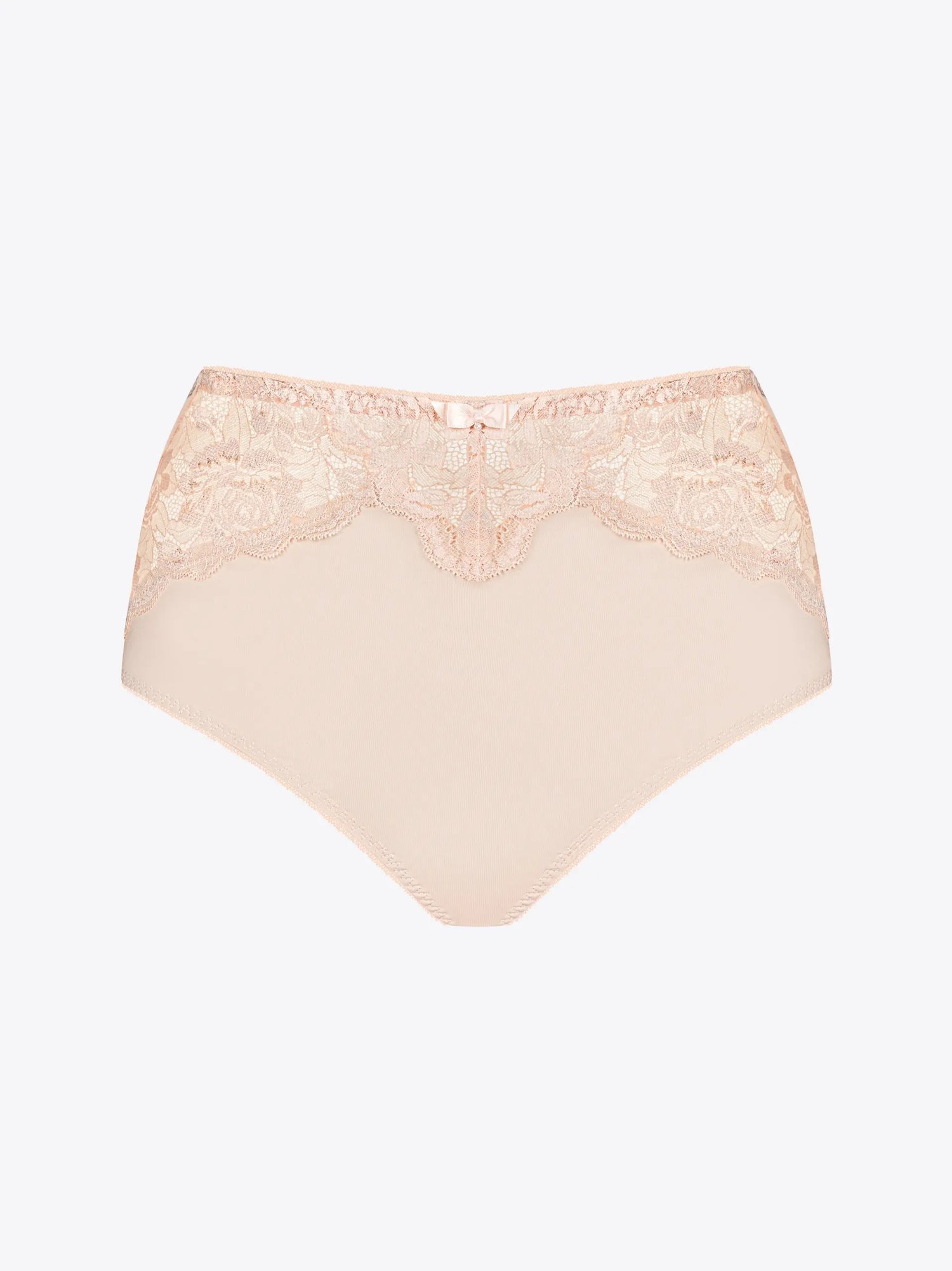 Lissi Tai High Waist hat eine extra hohe Taille, die sowohl die Hüfte, den Po als auch den Bauchbereich bedeckt. Das Tai-Höschen mit hoher Taille hat eine bequeme und elastische Passform und ist aus einer Kombination von Mikro- und wunderschöner floraler Spitze gefertigt. Der Slip mit hoher Taille ist für alle Größen geeignet.