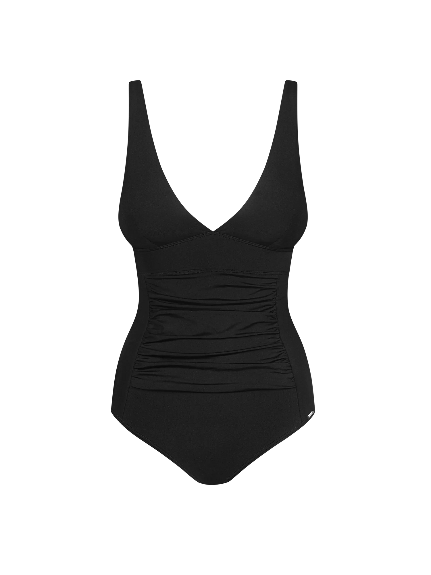 Der Marisol Badeanzug verfügt über bügellose Cups mit einem elastischen Band darunter für einen sicheren Halt. Er hat verstellbare Träger und herausnehmbare Polster für zusätzlichen Komfort und Flexibilität.