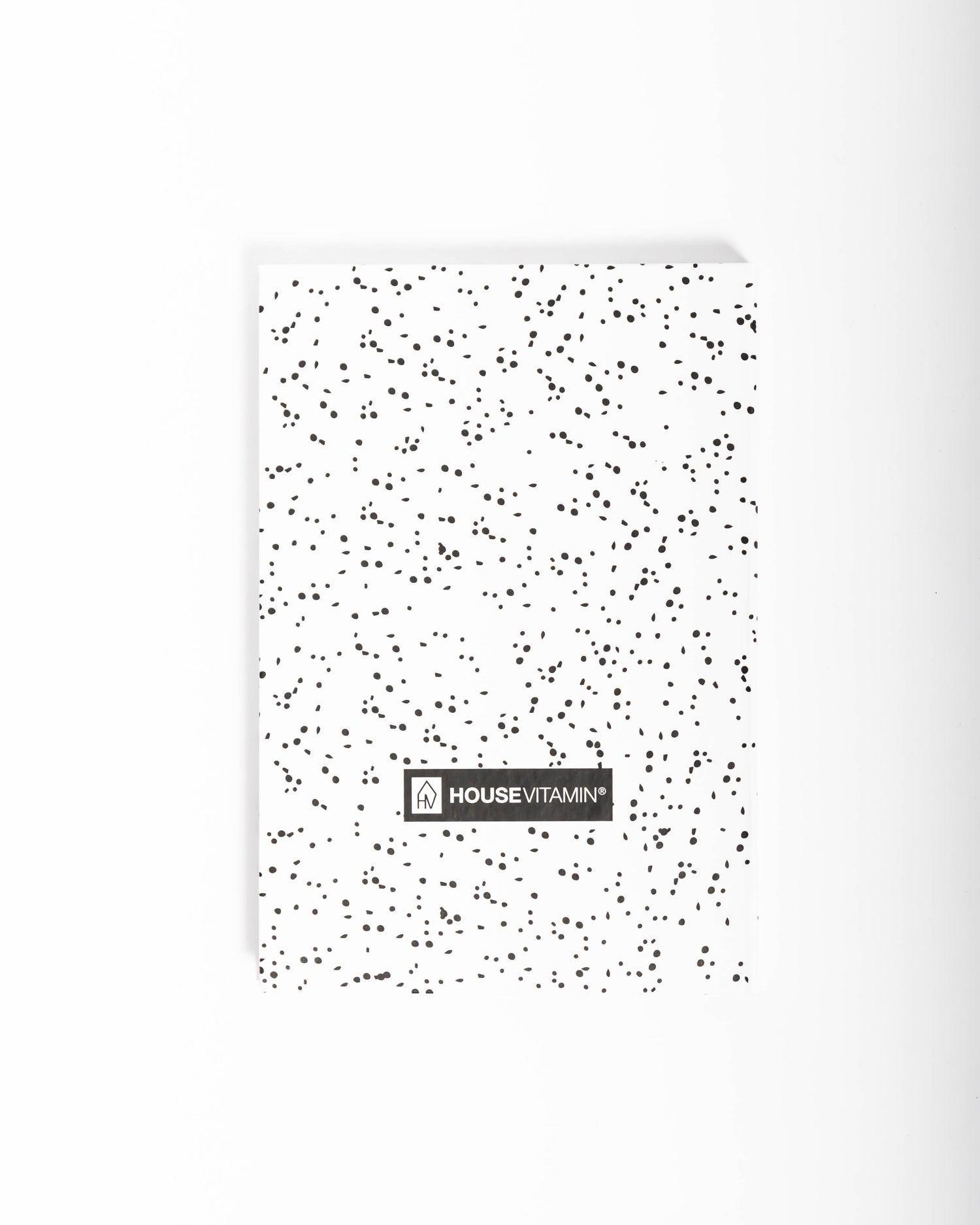 Dieses Notizbuch hat ein schönes Dots-Design, enthält 50 Seiten zum Abreißen und mehrere Notizzettel zum Abreißen, darunter Personal Goals, Brainwaves und To Do. Die Größe des Notizbuchs ist A5.
