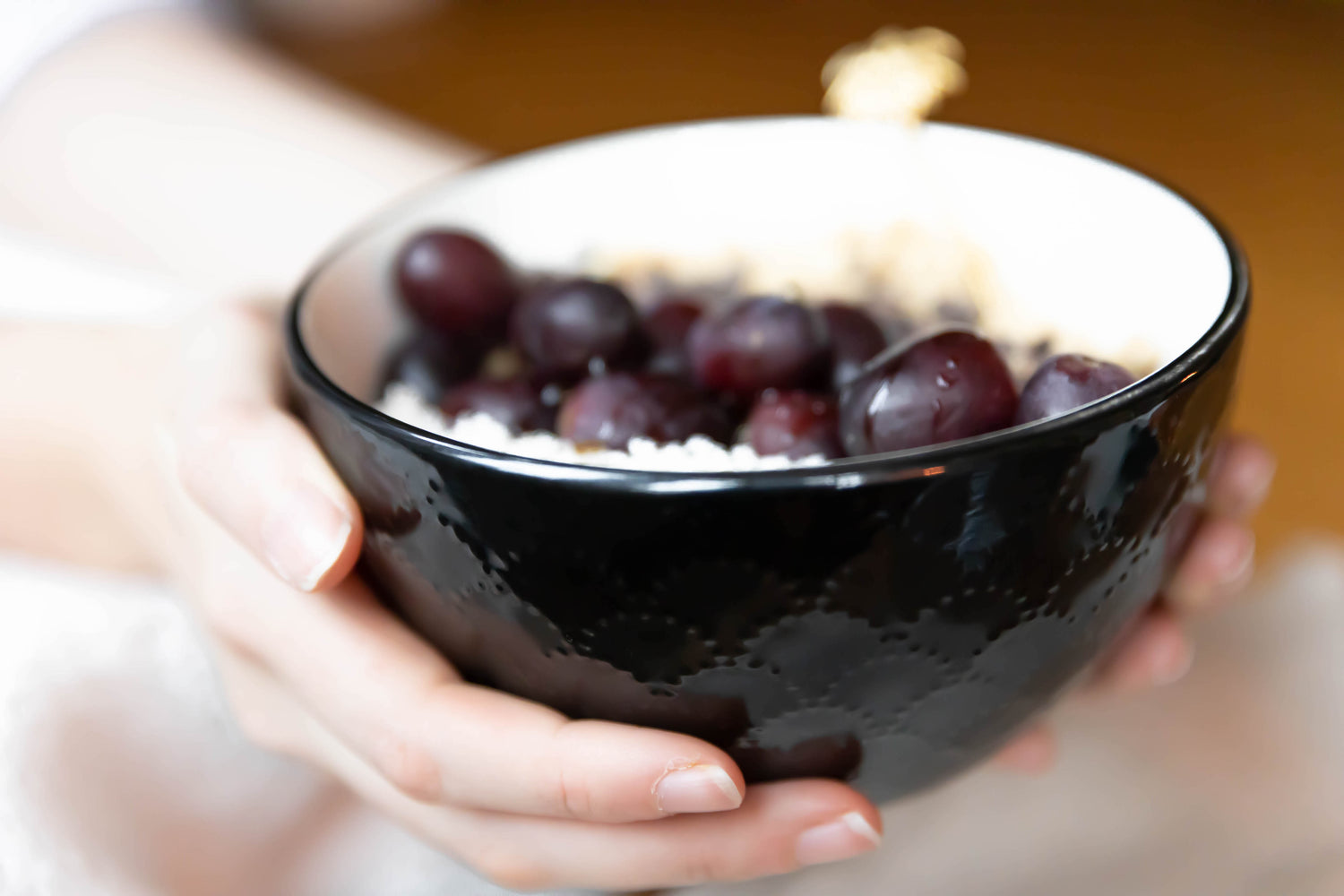 Diese Schüssel mit Gesicht hat eine Größe von Ø 15 cm und ist aus Porzellan gefertigt.