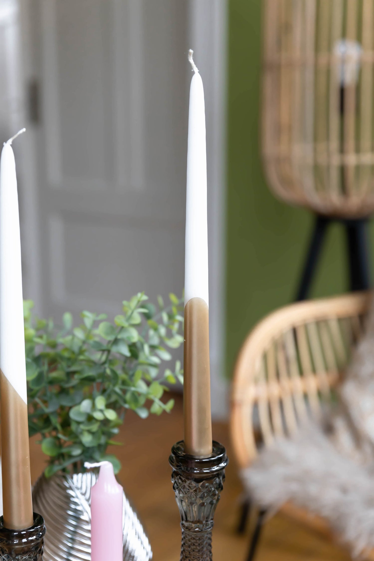 Diese luxuriösen weißen Kerzen sind in Gold getunkt. Das verleiht deinem Haus einen noch schickeren Look!